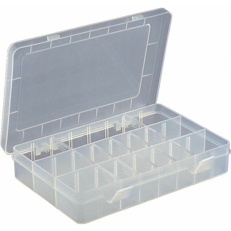 Descrizione del prodotto: Scatola bianca con 15 scomparti e cerniera semitrasparente con coperchio a scatto. Una robusta scatola di plastica con coperchio a scatto. cerniera semitrasparente e clip di montaggio. Fornito con divisori mobili che consentono di creare fino a 15 scomparti di dimensioni diverse. Organizzati per liberare la tua creatività... Questo organizer in PVC ti aiuterà a liberare la tua creatività. Raccogli e tieni al sicuro tutti i tuoi piccoli accessori, oggetti artigianali, braccialetti artigianali, ecc. La dimensione del vano può essere adattata alle esigenze individuali grazie alle griglie rimovibili. Aiuta a sfogliare il contenuto senza aprire la scatola in quanto è trasparente.Caratteristiche:La griglia all'interno della scatola può essere spostata.Disponibile anche in kit per la conservazioneVarietà di boxe di pillole e una varietà di piccoli medicinali. Regola i divisori per creare scomparti della tua misura. Perfetto per riporre orecchini, anelli, perline e