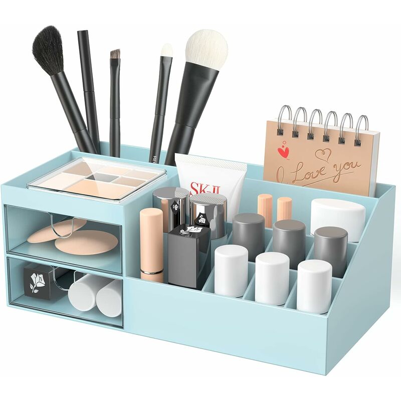 Organizzatore cosmetico funzionale: 24,5 x 12 x 9 cm. È l'apprendimento e materiali ABS rispettosi dell'ambiente, l'area di stoccaggio dei cosmetici è spaziosa e sempre adatta. Che si tratti della mensola del bagno, dell'armadio o del cassetto.Design multifunzionale: il contenitore per cosmetici è dotato di 2 cassetti completamente rimovibili e i componenti possono essere facilmente smontati, riservati e installati. Gli organizzatori hanno diverse dimensioni e forme per soddisfare le loro esigenze.Salva il tuo posto: in questo serbatoio cosmetico acrilico, rossetto, liplin, fondotinta, correttore, pennello, ecc. Può essere utilizzato come organizer per cosmetici femminili, oppure può essere utilizzato anche per penne, matite, scrivania e altre forniture per ufficio.Nessun montaggio: basta prenderlo dalla confezione, indossarlo, metterlo sulla scrivania e organizzarlo da soli! Mantieni tutte le cose importanti in modo ordinato, organizzato e implementato. Facile da pulire: usa sapone