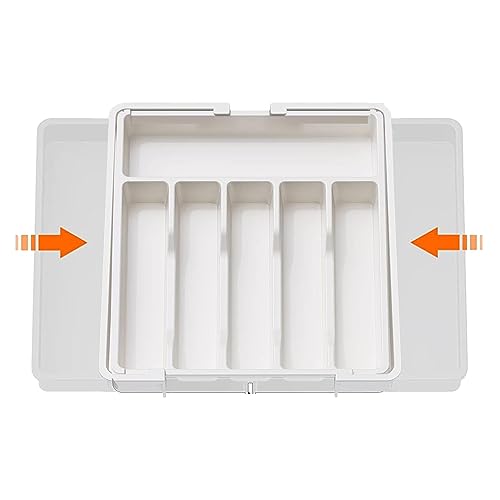 ℰDesign espandibile: grazie al design con fibbia, il nostro portaposate può essere facilmente regolato per adattarsi a cassetti di diverse dimensioni da 13 a 22,4 pollici, mantenendo tutte le posate organizzate e facilmente accessibili occupando unno spazio minimo in cucina.