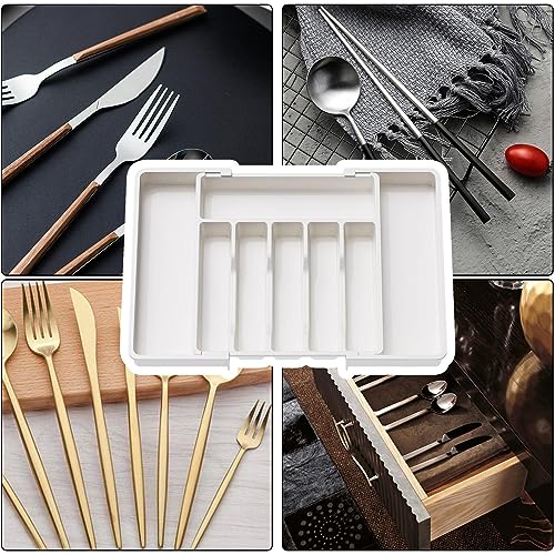 Scatola portaposate, Regolabile in Resistente Plastica per Cucchiai, Expandable Utensil Tray, Kitchen Drawer Organizer, Cassetto del bagno dellaa cuccina Divisori per Scrivania Cucina Bagno Trucco