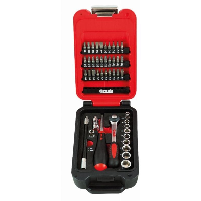 Dettagli: Set completo 1/4' e cacciavite: Cricchetto Premium FAST. Corona per la rotazione manuale. Pratico quando si inizia ad avvitare. Prestazioni: 72 denti. Accessibilità: angolo di 5° per spazi ristretti. Ergonomia: comoda impugnatura in bi-materiale. Pulsante diespulsione della presa, cambio di direzione sulla circonferenza della testa. ZAFFE: l'eliminazione degli spigoli vivi delle squadrette ne aumenta la resistenza e protegge i dadi dall'opacizzazione. Le bussole sono facili da maneggiare grazie alla spalla esterna per la presa. Marcatura delle dimensioni a tutto campo. Bussole a 6 lati per un serraggio potente. 10 bussole, impugnatura per cacciavite, 30 punte per cacciavite, prolunghe di cui una esclusiva flessibile. VALIGIA: in polietilene ad alta densità (HDPE), non si danneggia con gli urti come le valigie in metallo, che devono essereammaccate. Chiusure in metallo. Schiuma bicolore per una facile identificazione degli articoli mancanti. Dimensioni: 135x215x60 mm.