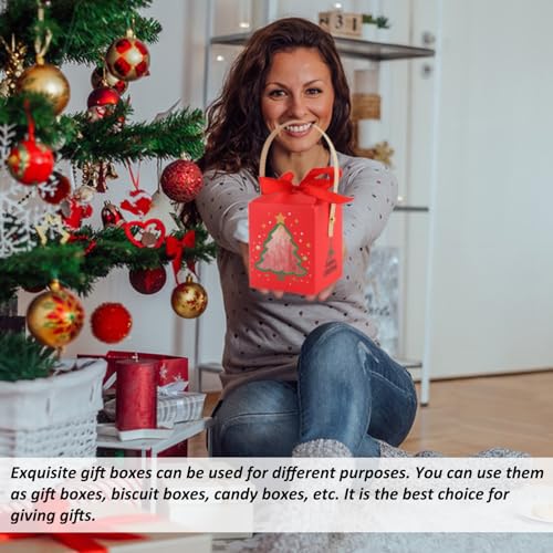 Scatola Regalo, ACTOYS 8 Pezzi Scatole Natalizie, Scatole per Caramelle, Scatole di Carta Natalizie con Manico e Finestra, Scatolina Regalo con Nastro per Feste di Natale
