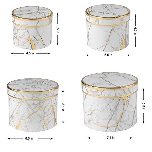 Contenuto: Confezione con 4 diverse dimensioni di scatole rotonde rigide, piccole - 11,4 x 11,4 x 8,9 cm, medie - 14 x 14 x 10,9 cm, grandi - 16,5 x 16,5 x 13 cm.