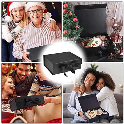 Scatola Regalo, Scatola regalo con fiocco, Scatola di Cartone Regalo Scatola Regalo Riutilizzabile Magnetico,Scatole Regalo con Nastro, Per Compleanno Anniversario Confezione (Nero)