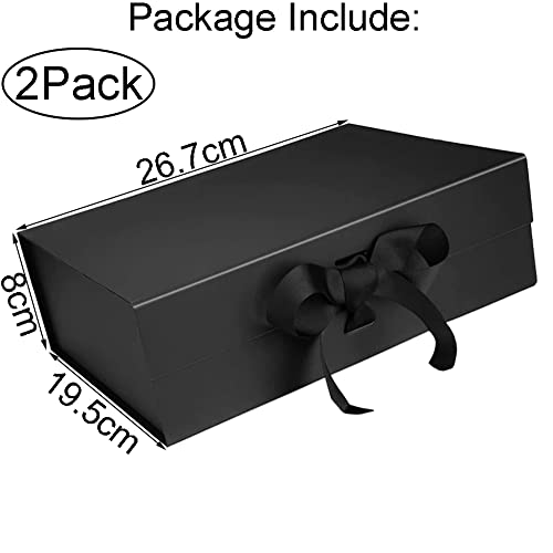 Scatola regalo, Scatola Regalo con Fiocco,Scatola Regalo Premium Gift Box con Chiusura Magnetica Confezione Regalo Pieghevole con Nastro di Seta,Biglietto di Auguri,26,7 x 19 x 8 cm (2 Pezzi)