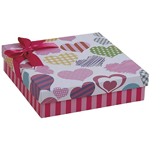 Scatola da regalo quadrata in cuori con motivo cartone 19 x 19 x 5 cm