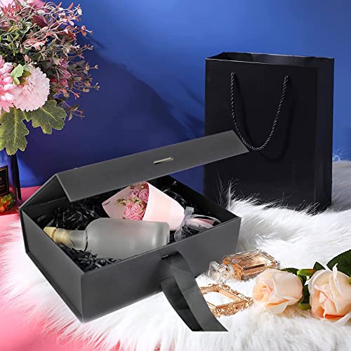 Scatola regalo, Scatola Regalo Riutilizzabile Magnetico, Scatole Regalo con Nastro, Scatola Regalo Riutilizzabile, Scatola Regalo Premium Gift Box con Nastro Scatole Regalo con Coperchi (Nero)