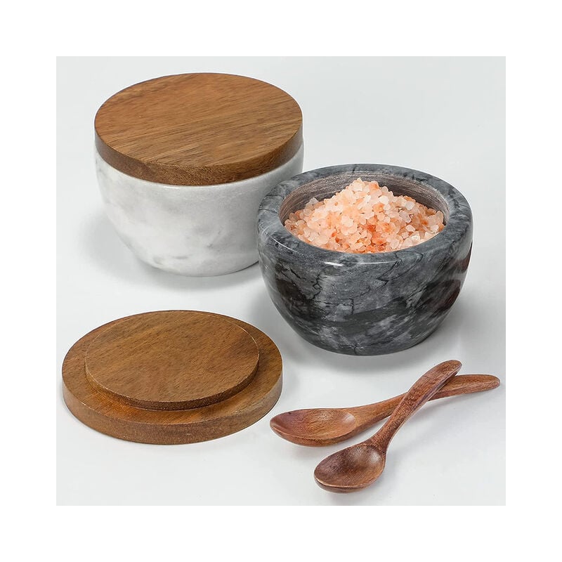 SAFETY & PREMIUM QUALITY - Our salt keeper box is made of high quality marble and natural acacia, non-toxic for safe using. Maximum capacity is 10 oz. ✔ UPGRADED WELL SEALED - The Natural Acacia Lid and Marble Base which keeps moisture away from the salt. Superb craftsmanship perfect to storage salt, herbs, spices, pepper, sugar, and more. This decorous salt box is a beautiful and practical addition to your kitchen. ✔ FUNCTIONAL CONTAINER - Have favorite seasonings always within arm's reach with this convenient salt box. Whether on the table, near the stove or out by the grill, it'll be easy to add just the right amount of flavor. Its heavy texture makes no worry for knocking down the salt box by accident. ✔ PERFECT GIFT IDEA - The design of salt container is so elegant and practical. Each piece has its own marbling, making each piece as unique as you. What a nice gift for your friend lover and family. ✔ SIZE: 3.93" total height, 2.75" diameter. Note: Handwash with a mild detergent.