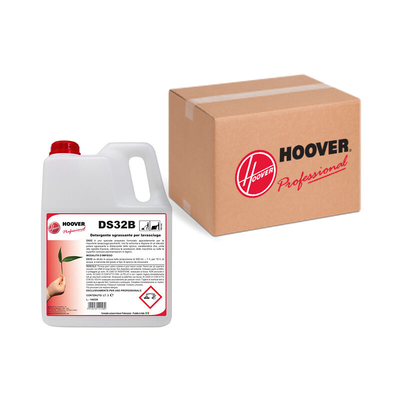 DS32B è un detergente alcalino concentrato, particolarmente adatto per la pulizia di fondo dei pavimenti industriali . DS32B, grazie al suo elevato potere sgrassante, distaccante e sospensivante dello sporco, agisce con efficacia e rapidità. DS32B sviluppa bassa schiuma, e si risciacqua molto facilmente. DS32B è disponibile in canestro di plastica da 3L CAMPI DI APPLICAZIONE DS32B viene utilizzato per il lavaggio di fondo di tutti i tipi di pavimento, ad eccezione di quelli in legno. DS32B è adatto per pulire pavimenti di magazzini, mense, supermarket, officine, industrie alimentari, ecc. DS32B può essere in generale impiegato per sgrassare tutte le superfici dure non verniciate. MODALITÀ DI IMPIEGO DS32B si applica sia manualmente con mop e aspiraliquidi che con monospazzola o con macchina lavasciuga equipaggiate con disco nero. Diluizioni consigliate: - Lavaggio di fondo: diluire con acqua al 5-10% (500 ml.-1 litro di DS32B per 10 litri d'acqua). - Lavaggio quotidiano: diluire