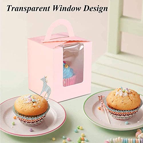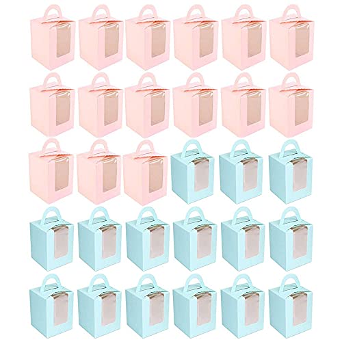 Scatola per Torta, 30 Pezzi Scatola per Cupcake, Singole Scatole per Cupcake, Cupcake Scatola, con Finestra Trasparente e Maniglie, per Natale, Compleanno, Festa, Matrimonio (Rosa&Blu)