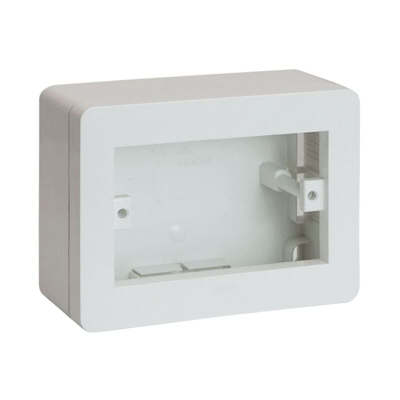 Scatola universale da parete Ave 3 Moduli Caratteristiche: Scatola universale Grado di protezione IP40 Colore RAL 9010 3 moduli Da utilizzare con armature standard 3 moduli (interasse 83,5 mm) Per minicanali da 20x10 mm a 30x18 mm Questo articolo può montare al suo interno qualsiasi modulo Sistema 44 Tipologia: Idrobox