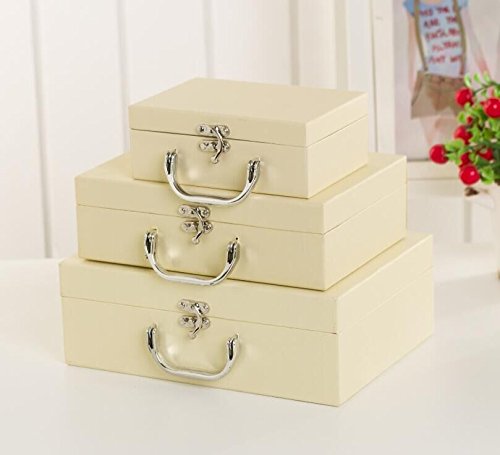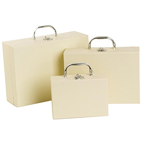 Scatola Valigia Con Manico Metallo Porta Regalo Oggetto Ospiti Evento Matrimonio Decorazione (GRANDE, AVORIO)
