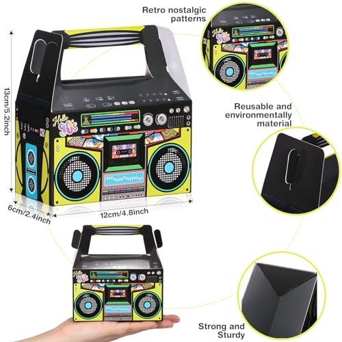 Numero adeguato di pacchetti: riceverai 24 pezzi di decorazioni per feste anni '80, queste bellissime scatole regalo possono aggiungere una forte atmosfera a tema retrò alla festa, permettendoti di immergerti in una varietà di decorazioni per feste e un numero sufficiente per soddisfare l'uso della tua festa e le esigenze di decorazione