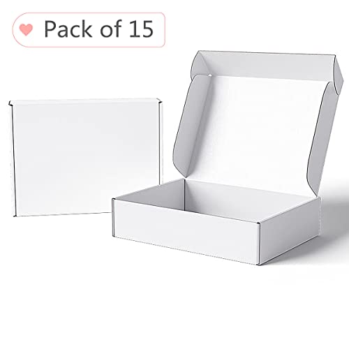 Scatole di cartone bianche, 15 scatole di spedizione ondulate con coperchio, scatole regalo di stoccaggio (30 x 20 x 5 cm, bianco)