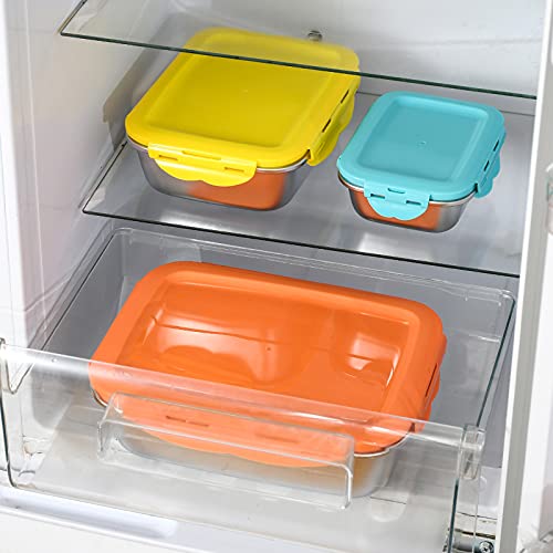 Set di 3 scatole di conservazione alimentare in acciaio inossidabile, contenitori ermetici per alimenti rettangolari, piatti di conservazione con coperchi per lavastoviglie, 600 ml/ 1500 ml/ 2900 ml