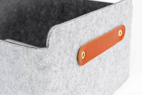 Elementi decorativi in vera pelle: grazie al design minimalista della scatola portaoggetti in feltro di MIQIO dalle linee pulite e al discreto sigillo in pelle, mostra il tuo gusto e l'amore per i prodotti di marca. Con l'elegante maniglia in pelle, ogni ripiano è di alta qualità. Disponibile in grigio scuro e grigio chiaro, non passerà inosservato