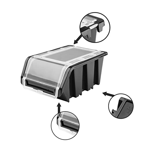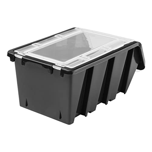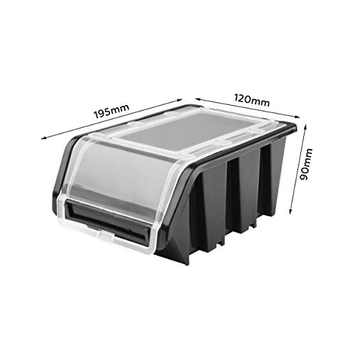 20 scatole impilabili con coperchio, dimensioni 120 x 195 x 90 mm, colore nero, per officina