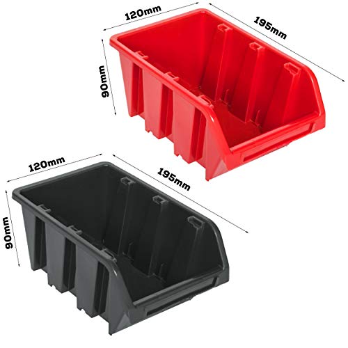 20 pezzi Scatola 120 x 195 x 90 mm | colore rosso 19 pezzi Scatola 100 x 155 x 70 mm | Colore nero 8 piastre da parete 39 x 39 cm porta attrezzi, 1 supporto per chiavi, 2 morsetti a morsetto, 4 ganci per attrezzi M 4 x ganci XXL 8 x morsetti per attrezzi, 2 x punte - e porta punte rosso 190 x 111 x 32 mm, 2 x supporti per cacciavite rosso 190 x 111 x 32 mm, 1 x 32 mm, 1 x porta attrezzi rosso 384 x 111 x 50 mm, 2 x 50 mm, 2 x 67 mm.
