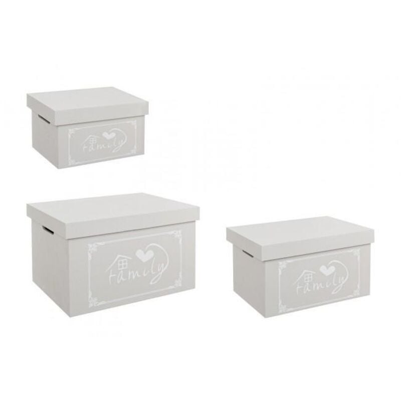 Scatole Set 3 Scatole Lovers Rettangolari Grigio in Legno Materiale: Legno di Paulownia Dimensioni: 30x19x16h cm - 36x25x20h cm - 42x31x24h cm