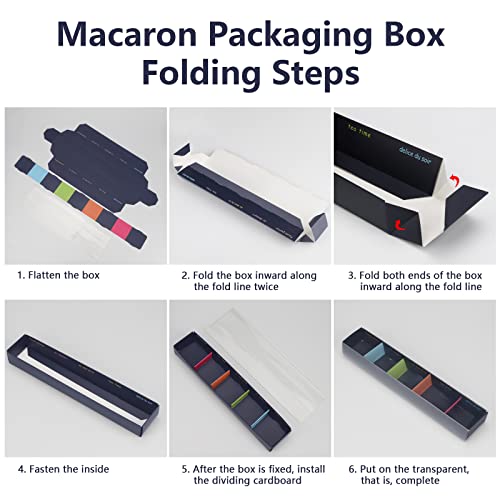 【SCATOLE PER MACARON CON FINESTRA TRASPARENTE】 Il nostro contenitore di carta Macaron adotta un design trasparente per finestre, che può mostrare i tuoi macarons all'interno senza esporli all'aria, non solo protegge i tuoi dessert ma ti consente anche di vedere facilmente il contenuto.