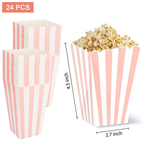 24 Scatole Di Popcorn,Scatole Di Caramelle Di Popcorn Con Sacchetti Popcorn Piccoli Accessori Per Barrette Di Caramelle Feste Set Per Snack Sacchetti Per Feste Contenitore Di Compleanno Nozze Rosa
