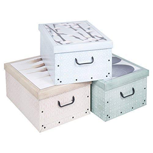 3 scatole portaoggetti in cartone, pieghevoli, da riporre sotto il letto, leggere, con coperchio e manici Cotton Pebble Feather Design