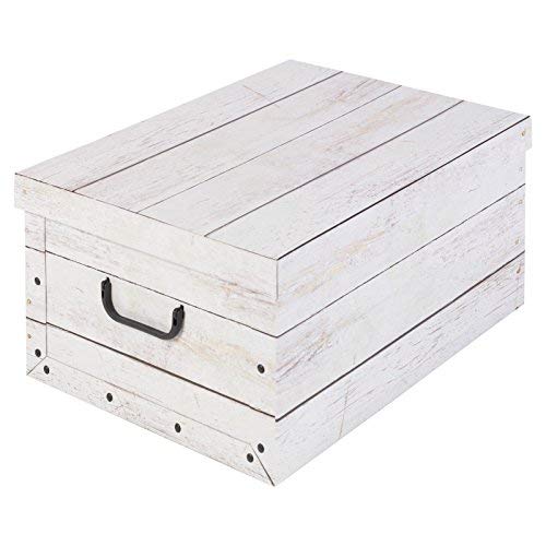 3 scatole portaoggetti in cartone, pieghevoli, da riporre sotto il letto, leggere, con coperchio e manici Wood Style