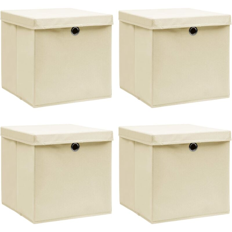Queste scatole portaoggetti pieghevoli si adattano perfettamente alla vostra casa e offrono un ampio spazio per riporre sciarpe, calzini, biancheria intima, e così via. I pratici contenitori portaoggetti sono realizzati in tessuto non tessuto che li rende piuttosto resistenti. Ogni contenitore è dotato di un coperchio per mantenere puliti gli articoli conservati. Ciascuna scatola portaoggetti è inoltre dotata di un comodo occhiello in metallo che può essere utilizzato per estrarla dall'armadio, dallo scaffale, dal mobile, ecc. Quando non sono in uso, le scatole portaoggetti possono essere ripiegate per risparmiare spazio. Colore: crema Materiale: Tessuto non tessuto (100% poliestere) Dimensioni: 32 x 32 x 32 cm (L x L x A) Pieghevole Coperture incluse La consegna include: 4 Scatole portaoggetti