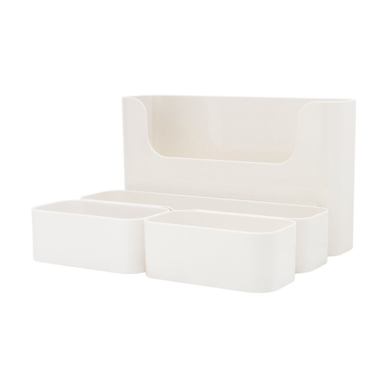 Materiali di alta qualità: i nostri contenitori da parete sono realizzati in plastica ABS di alta qualità, che presenta un'eccellente fattura e può essere utilizzata a lungo. compatto e squisito, resistente. I bordi sono finemente lucidati, realizzati in materiale ecologico, privo di formaldeide. Installazione semplice: questa scatola portaoggetti a parete può essere fissata alla superficie liscia in modo molto stabile mediante un forte adesivo, senza perforazioni o fori o danni al muro. Tutto quello che devi fare è staccare la pellicola protettiva, puoi mettere la scatola di immagazzinaggio dove vuoi e puoi usarla normalmente. Dimensioni: 26,8 * 22 * 15,5 cm Design pratico: scatola portaoggetti quattro blocchi mobili. Spostando il modulo, puoi regolare lo spazio in base alle tue esigenze come desideri. è molto conciso, piccolo, di buona qualità e materiale ecologico. Lascia un foro per la ricarica del telefono e perdite d'acqua. Puoi attaccarlo su pareti piatte, comodini, bagni e