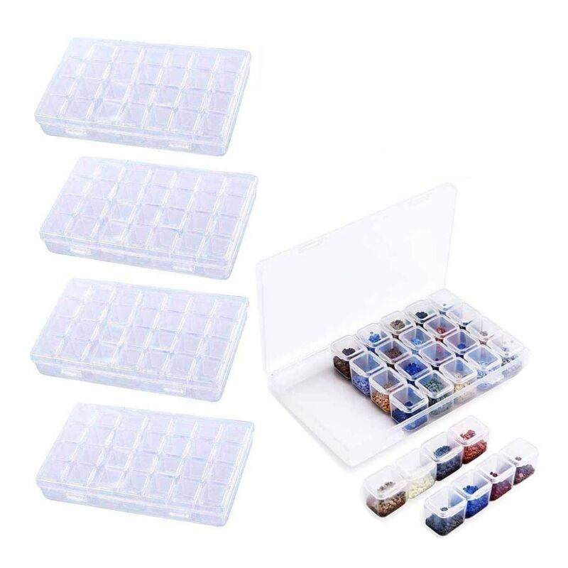 ideale per organizzare piccoli accessori. La scatola contiene 7 file di 4 griglie congiunte, i coperchi di 4 griglie piccole congiunte sono separati, si possono aprire singolarmente e ogni fila di griglie è mobile. Può essere utilizzato come custodia per accessori per pittura con diamanti, orecchini, collana, perline, accessori per nail art, anello, piccoli gioielli o amo da pesca.