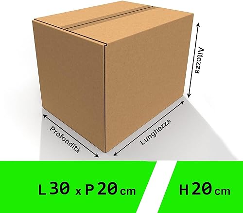 10 Scatole Rettangolari Onda Singola 30x20xh20 Resistenti Per Spedizioni Traslochi ed Ecologiche