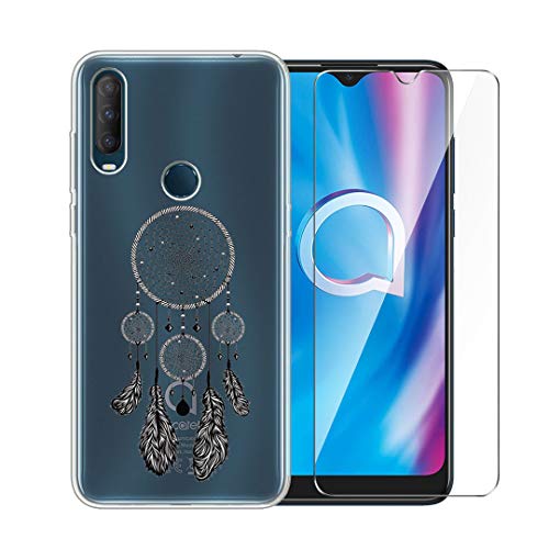 SCDMY Custodia per Alcatel 1S 2020 Cover + Vetro Temperato, Trasparente Morbida Custodia, Forte Protezione Case Silicone TPU Copertura Vetro Temperato per Alcatel 1S 2020 (6.22") - WM22