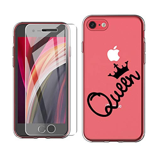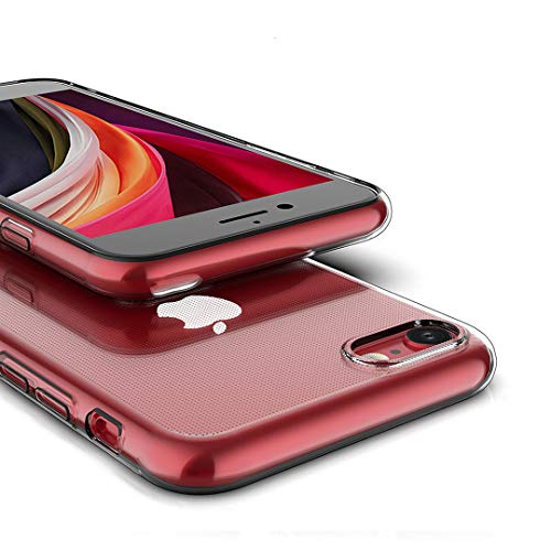 SCDMY Custodia per Apple iPhone SE 2020 Cover + Vetro Temperato, Trasparente Morbida Custodia, Forte Protezione Case Silicone TPU Copertura Vetro Temperato per Apple iPhone SE 2020 (4.7") - LF10