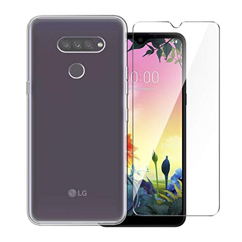 SCDMY Custodia per LG K50S Cover + Vetro Temperato, Trasparente Morbida Custodia, Forte Protezione Case Silicone TPU Copertura Vetro Temperato per LG K50S (6.5") - Clear