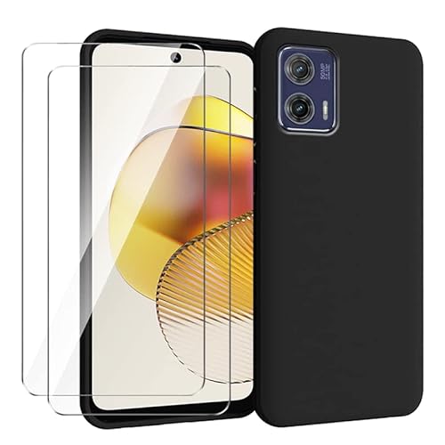 SCDMY Custodia per Motorola Moto G73 Cover + [2 Pezzi] Pellicola Protettiva in Vetro Temperato, Black Morbida Custodia Forte protezione Case Cover Silicone TPU Copertura (6.50")-Nero