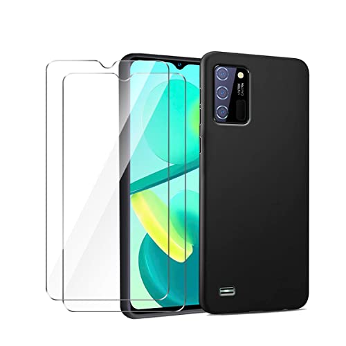 SCDMY Custodia per Oukitel C25 Cover + [2 Pezzi] Pellicola Protettiva in Vetro Temperato, Black Morbida Custodia Forte Protezione Case Cover Silicone TPU Copertura (6.52")-Nero
