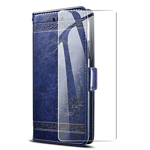 SCDMY Custodia in Pelle per Oppo Reno 2Z Caso + Pellicola Vetro Temperato, Retro Flip PU Pelle Cover Protettiva con Carta Slot Portafoglio Funzione Supporto Stand Case Custodia - Blu
