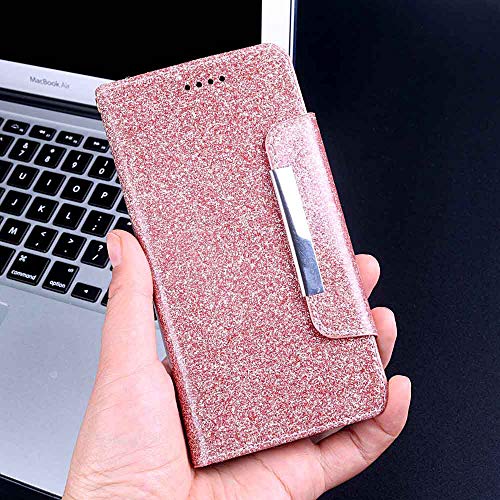 SCDMY Custodia in Pelle per Wiko Power U10/U20 Caso + Pellicola Vetro Temperato, Rosa Brillante Flip PU Pelle Cover Protettiva con Carta Slot Portafoglio Funzione Supporto Stand Case Custodia