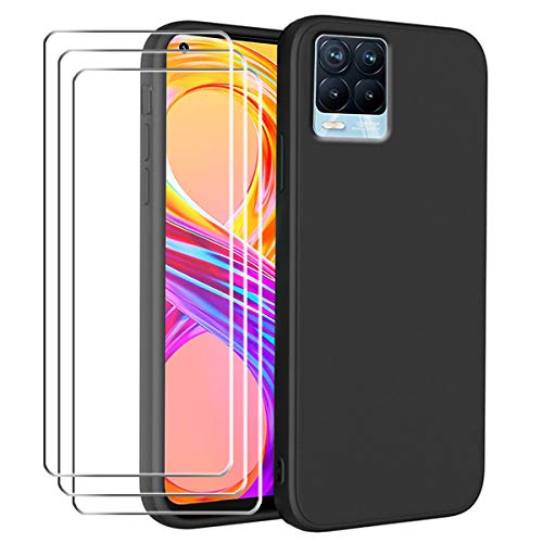SCDMY Custodia per Realme 8 PRO Cover + [3 Pezzi] Pellicola Protettiva in Vetro Temperato, Black Morbida Custodia Forte Protezione Case Cover Silicone TPU Copertura (6.4") - Nero