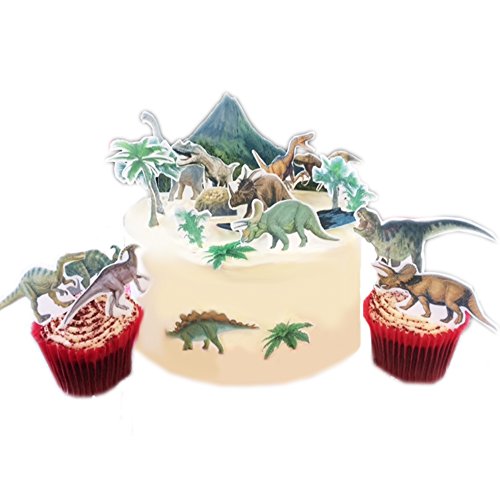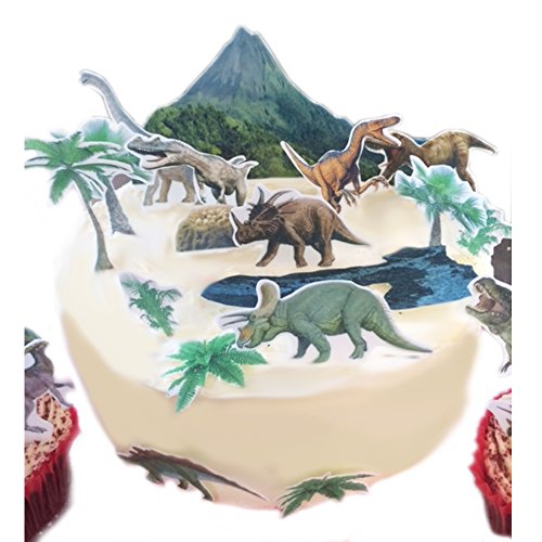 Scena dinosauri, giurassico, in ostia commestibile, perfetta per decorare la tua torta di compleanno, facile da usare