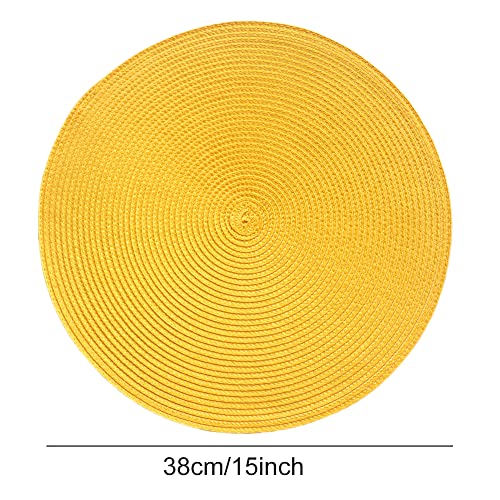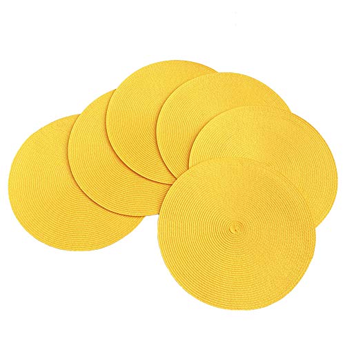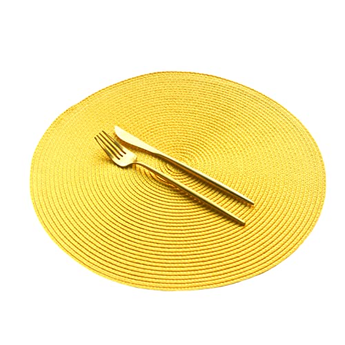 SCF2017 Tovagliette rotonde in plastica intrecciata, 38 cm, eleganti e pratiche, set da 6, colore: giallo