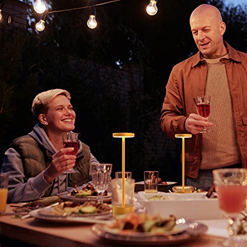 SCFUK - Lampada LED da Tavolo Senza Fili Dimmerabile in Alluminio, Lampada da Scrivania Uso Interno/Esterno Ristorante in Ricaricabile Batteria 6000mAh H34cm Plug USB (D'oro)