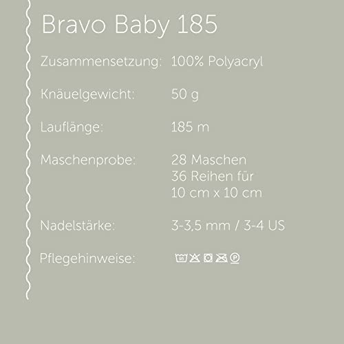 Ambito di fornitura: 1x Schachenmayr Bravo Baby 185, 50g / filato baby di alta qualità in poliacrilico / filato baby disponibile in diversi colori / campione di maglia: 10x10 = 28Mx36R