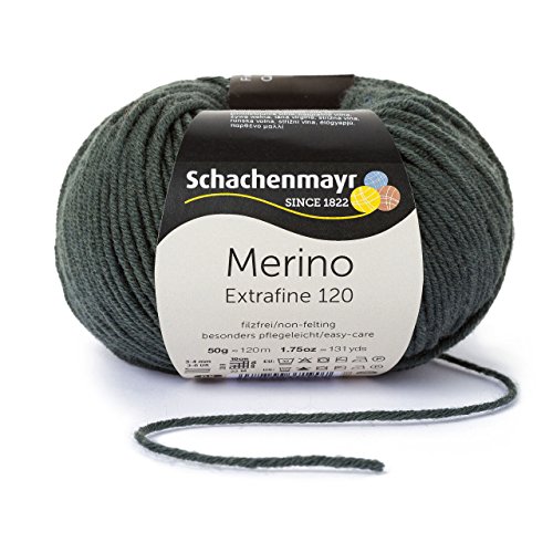 Schachenmayr, Lana Merino Extra Sottile, 120 9807552, Lana Vergine per lavori a Maglia, Lana, Olive, 10 x 10 x 7 cm