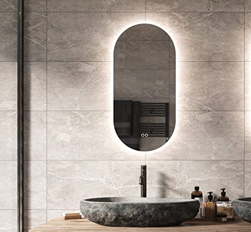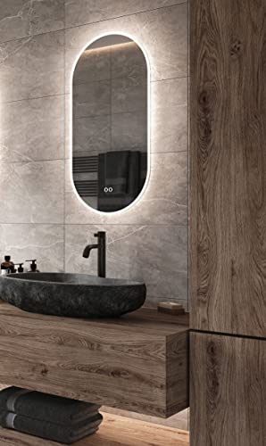 Schaere Specchio da Bagno Ovale con Illuminazione a LED Variabile a Cambiamento Colore e Riscaldamento a Specchio, 40x80 cm Serie 8020
