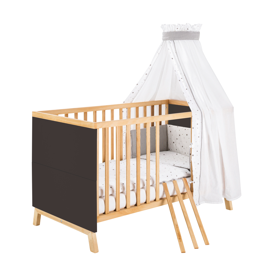 Dettagli del prodotto: Letto combinato per bambini 70 x 140 cm Barra e corrimano Con 3 pioli Rete a doghe regolabile in 3 posizioni Materiale e cura: Materiale: Testiera e pediera, decoro nero Griglia e corrimano in faggio massiccio, colore naturale oliato Telaio delle gambe, faggio massiccio, colore naturale oliato Dimensioni e peso: Lunghezza: 144 cm Larghezza: 77 cm Altezza: 86 cm Superficie di appoggio: 140 x 70 cm Carico massimo: 15 kg Incluso nella fornitura: Lettino combinato Attenzione: il materasso e le decorazioni non sono inclusi nella fornitura.
