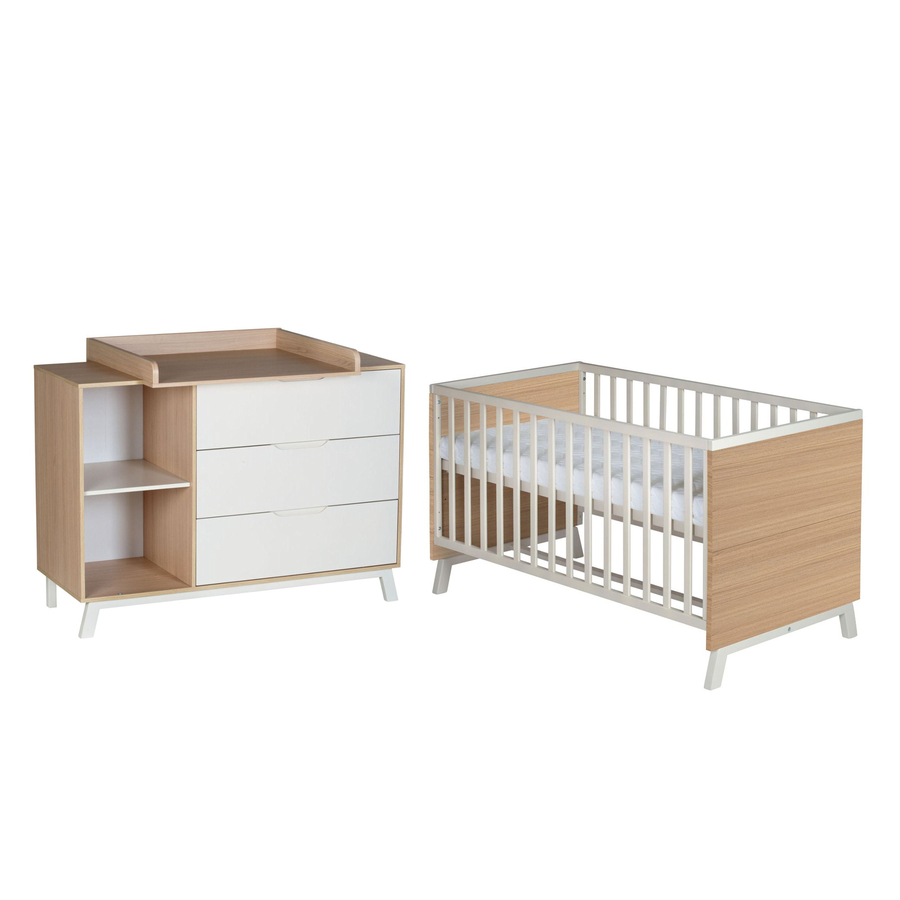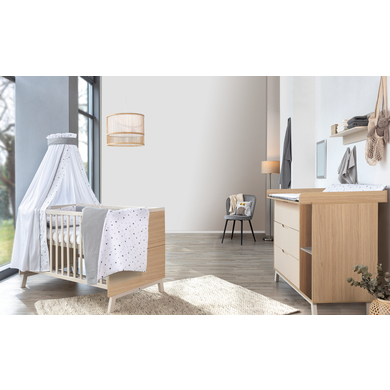 Dettagli del prodotto: Prodotto in Germania Schardt vincitore del test impegno sostenibile Letto combinato per bambini 70 x 140 cm Dettagli del prodotto: Barra e corrimano Con 3 pioli a scomparsa Telaio a doghe, regolabile in 3 posizioni 2 sponde per la trasformazione in letto Junior Dimensioni e peso: Dimensioni: lunghezza: 144 cm, larghezza: 77 cm, altezza: 86 cm Dimensioni del materasso: lunghezza: 140 cm, larghezza: 70 cm Dimensioni dei lati di conversione: Lunghezza: 140 cm Carico massimo: 15 kg Materiale e cura: Testiera e pediera: MDF Clay Barra e corrimano: Legno di faggio massiccio, laccato argilla Telaio a doghe: faggio massiccio Telaio delle gambe: faggio massiccio, laccato argilla Fasciatoio con piano fasciatoio Dettagli del prodotto: 3 cassetti con meccanismo di chiusura automatica e guide laterali extra robuste Ripiano laterale con due scomparti aperti Piano di cambio rimovibile Dimensioni e peso: Dimensioni: altezza: 102 cm, larghezza: 135 cm, profondità: 53/72 cm Altezza cambio: 94 cm Materiale e cura: Struttura: decoro Rovere Vincenza Frontali: MDF, laccato argilla Struttura delle gambe: faggio massiccio, laccato argilla Incluso nella fornitura: Lettino combinato Fasciatoio con piano fasciatoio Nota bene: il materasso e la decorazione non sono inclusi nella fornitura.