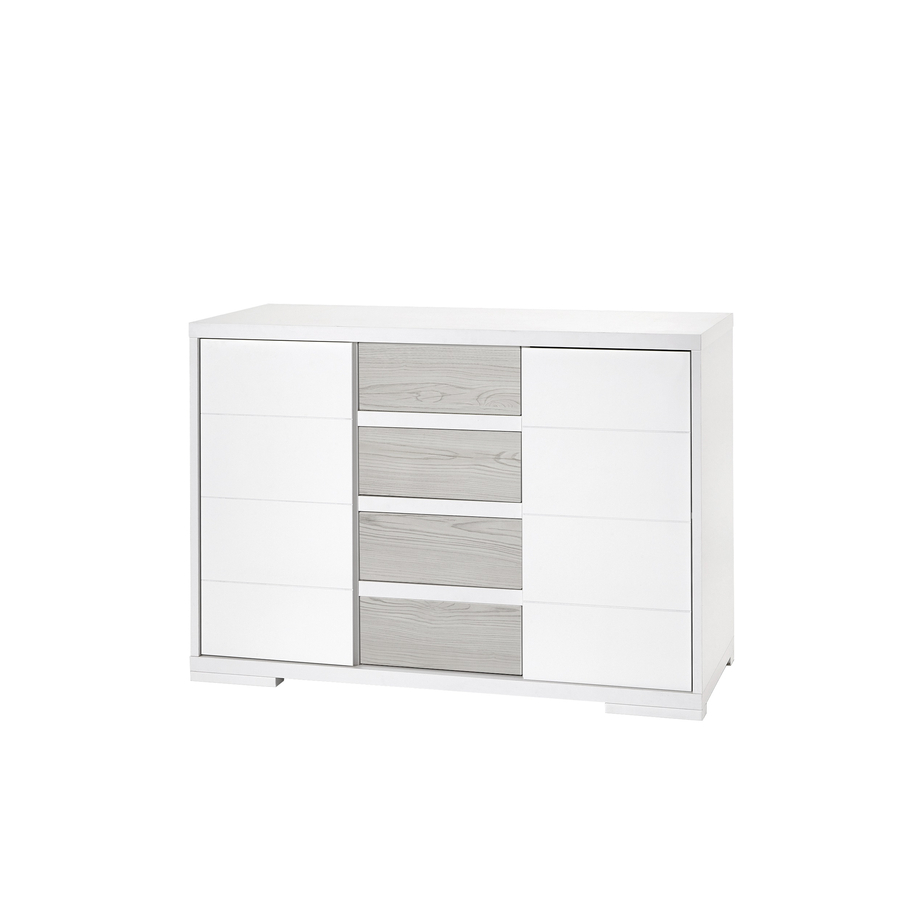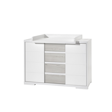 Dettagli del prodotto: 4 cassetti con apertura a pressione e guide laterali extra forti 2 ante con sistema di chiusura ammortizzata 2 ripiani Fasciatoio removibile Made in Germany Schardt come vincitore del test impegno sostenibile Dettagli tecnici: Cassettiera Colore: bianco / grigio Materiale corpo e cassetto: Truciolato, rivestito in melamina Materiale ante: MDF, laccato Dimensioni senza fasciatoio: larghezza x profondità x altezza 126 x 53 x 92 cm Dimensioni con fasciatoio: Larghezza x profondità x altezza 126 x 72 x 100 cm Altezza: 92 cm Fasciatoio Colore: bianco Materiale: truciolato, rivestito in melamina Superficie per il cambio: larghezza x profondità 80 x 72 cm Incluso nella consegna: Cassettiera Fasciatoio