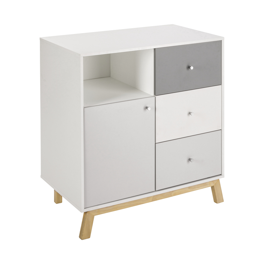 Dettagli del prodotto: 3 cassetti aden a chiusura automatica con guide laterali extra forti 1 porta L'unità di cambio è rimovibile Dettagli tecnici: Comò Colore: bianco / grigio Materiale: truciolato, rivestito in melamina Materiale telaio di base: faggio massiccio, oliato Dimensioni senza cambiare unità: larghezza x profondità x altezza 90 x 53 x 94 cm Dimensioni con unità di cambio: larghezza x profondità x altezza 90 x 72 x 102 cm Cambio unità Colore: bianco Materiale: truciolato, rivestito in melamina superficie di avvolgimento: larghezza x profondità 80 x 75 cm Altezza variabile: 94 cm Incluso nella consegna: cassettiera Cambio unità