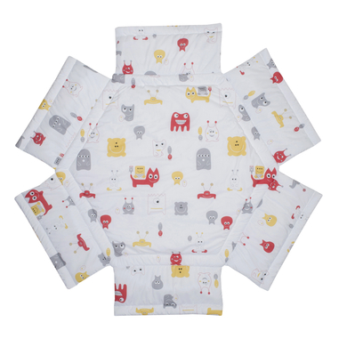 Stupendo paracolpi con simpatici mostri. Chiusure in velcro che garantiscono una presa sicura. Una morbida imbottitura rende possibile a tuo figlio comode ore nel giocare e durante il riposo. Dettagli del prodotto: Materiale: 100% cotone;